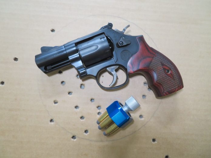 I loaded up my orphan rounds roulette, which was a mix of leftover 357 Mag and 38 Special ammo, loaded the chambers, and spun the cylinder. This way I had no idea if a hot 357 Mag round was coming or a soft shooting 38 Special. I fired as fast as I could in DA while still keeping the gun under control and found the ported barrel helped me to keep the front sight down and on target.