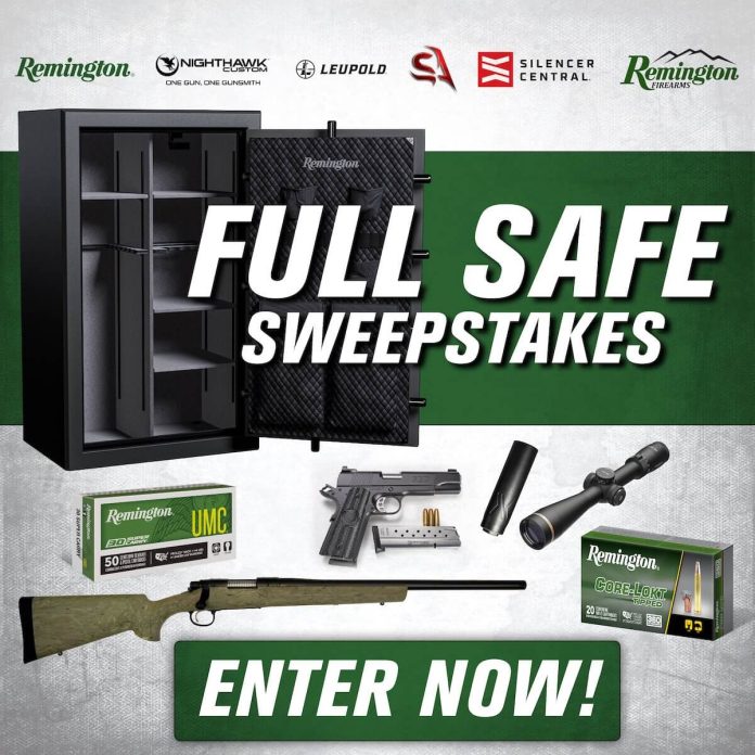 Featuring a massive prize assortment from leading industry brands including Remington Arms, Remington Safes, Nighthawk Custom, Leupold Optics, Silencer Central, and Remington Ammunition, sweepstakes entrants can win one of two prize packages, detailed below.