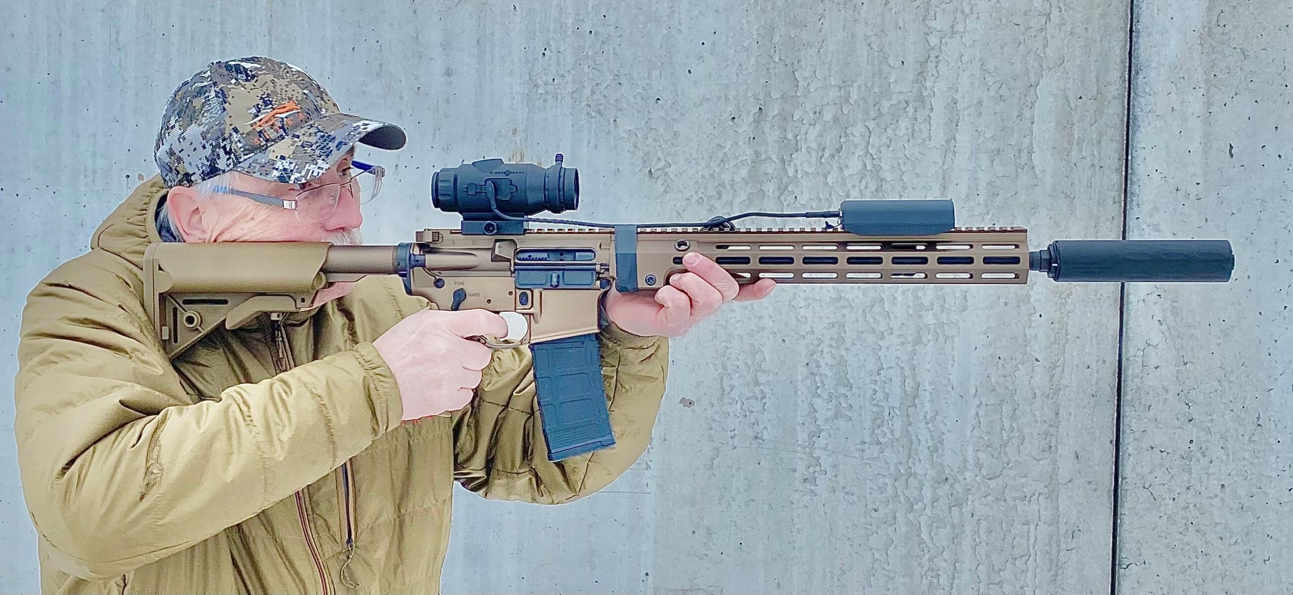 Geissele Super Duty rifle with Operator 5.56 suppressor and American Eagle .223 Rem ammo test setup